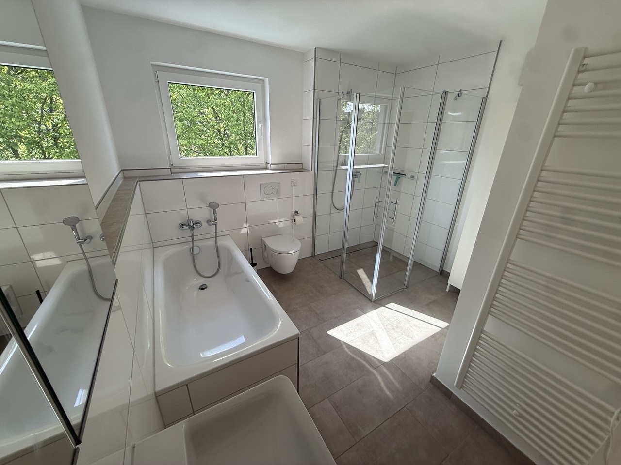 Die Wohnung ist mit Parkett und Fliesen im Küchenbereich sowie Fußbodenheizung ausgestattet. Das Bad verfügt über eine Badewanne und barrierearme Dusche.
