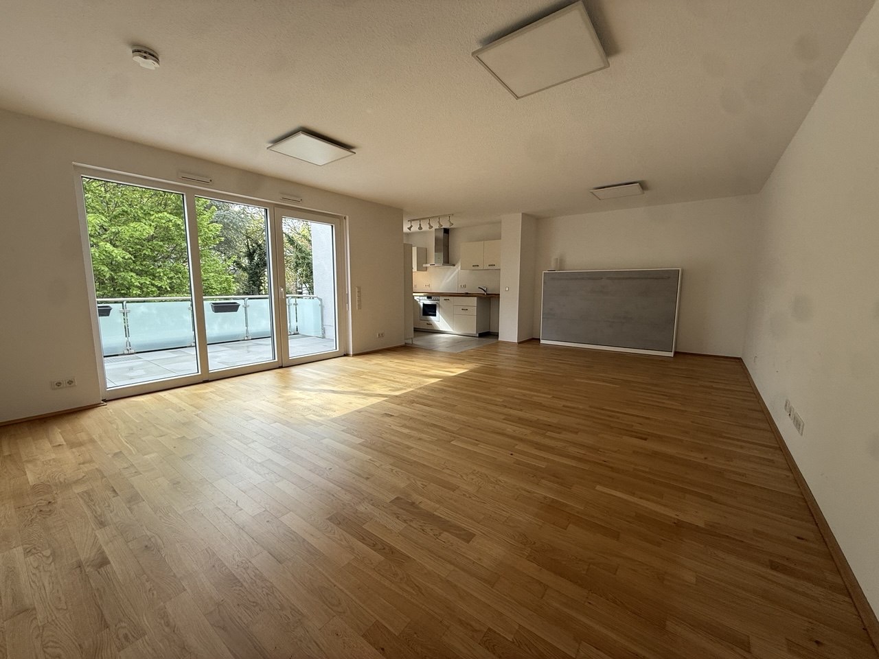 Die Wohnung verfügt über 2 Zimmer, eine offene Küche, eine Diele, ein Badezimmer sowie Gäste-WC, eine Dachterrasse, einen Abstellraum sowie Mieterkeller und Tiefgarageneinstellplatz.